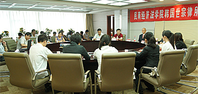 分党委副书记兼副院长王洪松,2010年韩国世宗律所奖学金评议小组教师代表姚国强和获奖学生,仪式由av在线