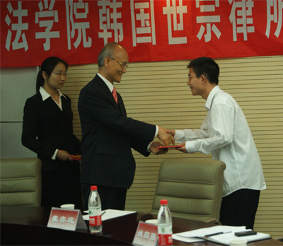 事业尤其是青年学子的祝愿和共同发展东亚现代文明与文化的希望。随后,崔容远律师向参加仪式的同学和老师介绍了韩国世宗律师事务所的基本情况,他表示作为韩国四大律所之一,世宗律所先后在北京、上海建立代表处,已在中国完成了很多重大项目。