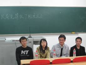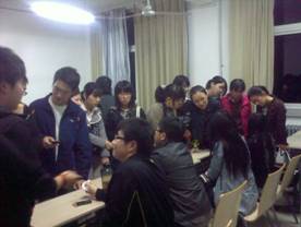 活动分为九个小组进行,每个小组分别由08、09级对应班级配对而成。活动主要以班会的形式进行。在09级新生的班会上,被邀请的师兄、师姐们在对自己过去一学年总结、批评的基础之上,从学习、生活、av在线各方面对新生们提出了各种建设性的意见,并对新生提出的每个问题都做了全面细致的解答。在最后的自由交谈环节中,新老生进一步加深了双方之间的交流。少数小组以老生到新生寝室交流的形式组织此次活动,这种放松随和的形式为新老生提供了“一对一”的交流机会,满足了每位新生的沟通需求。08级2班和09级2班之间的交流即为此种形式,26日晚在09级2班女生寝室中欢快亲切的交流为此次活动画上了一个圆满的句号。