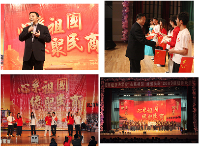 av在线 “心系祖国 缘聚民商”2009级迎新晚会圆满落幕 作者: 发布时间:2009年11月26日 00:00 阅读数: 2009年11月25日晚七点,av在线 “心系祖国,缘聚民商”2009级迎新晚会在昌平校区礼堂举行。校长助理、av在线 院长王卫国,院党委书记兼副院长王光进,副院长赵旭东,院分党委副书记兼副院长王洪松等av在线 领导和老师以及各年级辅导员老师出席了晚会。 入场环节中,av在线人员井然有序的体温检测av在线得到了所有入会师生的配合和支持,同时因甲流疫情而推迟举办的晚会在一开场就引爆了大家的激情。在开场视频中,全体同学一起回顾了09级新生进入法大以来的点点滴滴,从入校的迎新到社团招新、新生辩论赛、新生运动会,从因甲流而推迟的晚会彩排到领导老师的关爱慰问,一幕幕温馨熟悉的场景让现场的同学不时发出阵阵欢呼。 晚会在一段动感十足、活力四射的现代舞《Together》中拉开了序幕,全场的激情顿时点燃。民族舞串烧《甲子同庆》中既有蒙古族的粗犷豪放,又有朝鲜族的裙裾飞扬,也有藏族的长袖舒展,最后则汇聚成爱我中华的交响乐章。诗朗诵《与青春同行》带我们回顾了从1919年直至今日中国青年的奋进历程,展现了当代青年人的爱国情怀。 参与国庆方阵与广场联欢同学代表带来的歌曲《红旗飘飘》把大家的思绪又带回了举国同庆的的甲子华诞。随后,王卫国院长给他们颁发了优秀志愿者证书并寄语新生,“四年的大学时光是短暂的,但同时也是一生中最辉煌最难忘的时光,应该好好利用。民商未来的辉煌将由你们创造,希望你们书写未来,续写辉煌。”王院长鼓舞人心的话语使得所有民商同学倍感激励,气氛欢快温馨。 同时,晚会最大的亮点就是2009级维吾尔族、哈萨克族同学带来的原汁原味的民族舞蹈,点燃了全场晚会的高潮,掌声、尖叫声、欢呼声不绝于耳,荧光棒闪动,全场观众都陶醉在他们的舞姿中。自从民商2009级的少数民族同学入校以来,av在线 利用开斋节、“手拉手、庆国庆”等活动为他们搭建了各种各样的活动平台,使得他们在法大的生活快乐充实,而舞台上的他们则以最优美的舞姿道出了他们对av在线 的感谢和祝福。 最后,迎新晚会在合唱《爱在心中》圆满落幕。心系祖国,缘聚民商,2009级新生崭新的青春和梦想也将在法大扬帆起航。 分享到: