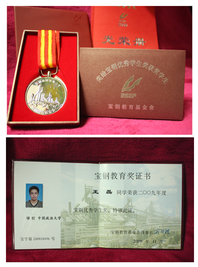 2007级研究生王磊同学和2006级本科生李弯弯同学,凭借扎实的专业知识,丰富的社会实践和突出的创新意识,在评选过程中脱颖而出,荣获2009年“宝钢教育奖”优秀学生奖。