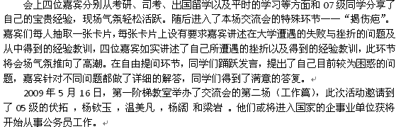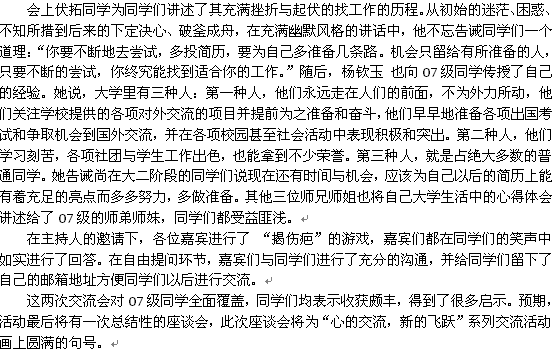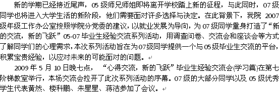 “心的交流,新的飞跃”——07级开展毕业生05-07经验交流系列活动