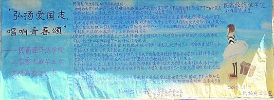 2009年“弘扬爱国志 唱响青春颂”毕业生文明离校av在线已经拉开帷幕,这一次以毕业生离校将以切合时代大背景的“责任与信心”为主题,开展一系列以健康文明为宗旨的活动。