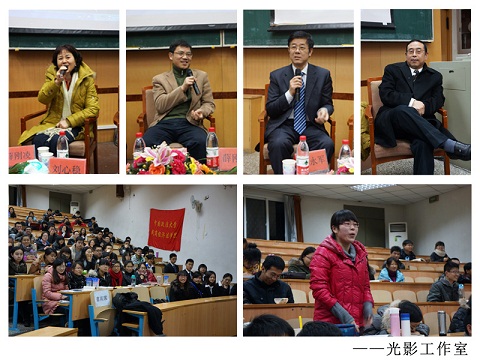 人,您会不会后悔?”对此刘心稳教授回答说:“我得到了太多的鼓励,民法给我带来了很大的乐趣,成为教师给自己带来了很多的快乐,我不后悔。”同学们提出的第二个问题是学生应该把时间全部花在学习上,还是去积极尝试,对此薛教授和孔教授都说在学习的同时,还应接触其他的东西。刘心稳教授认为留心处处是学问,应合理分配时间和精力。